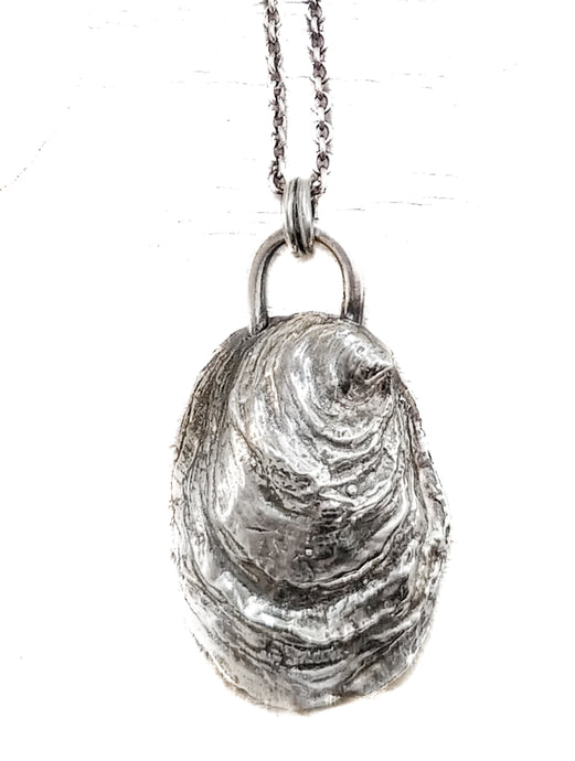 Silver Oyster Drill Shell Necklace - Cast Conch Shell Pendant