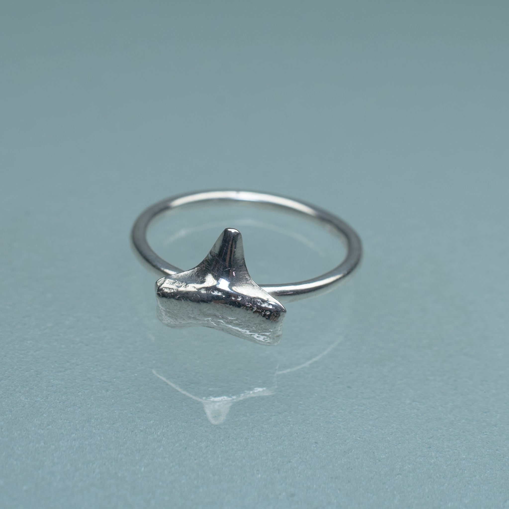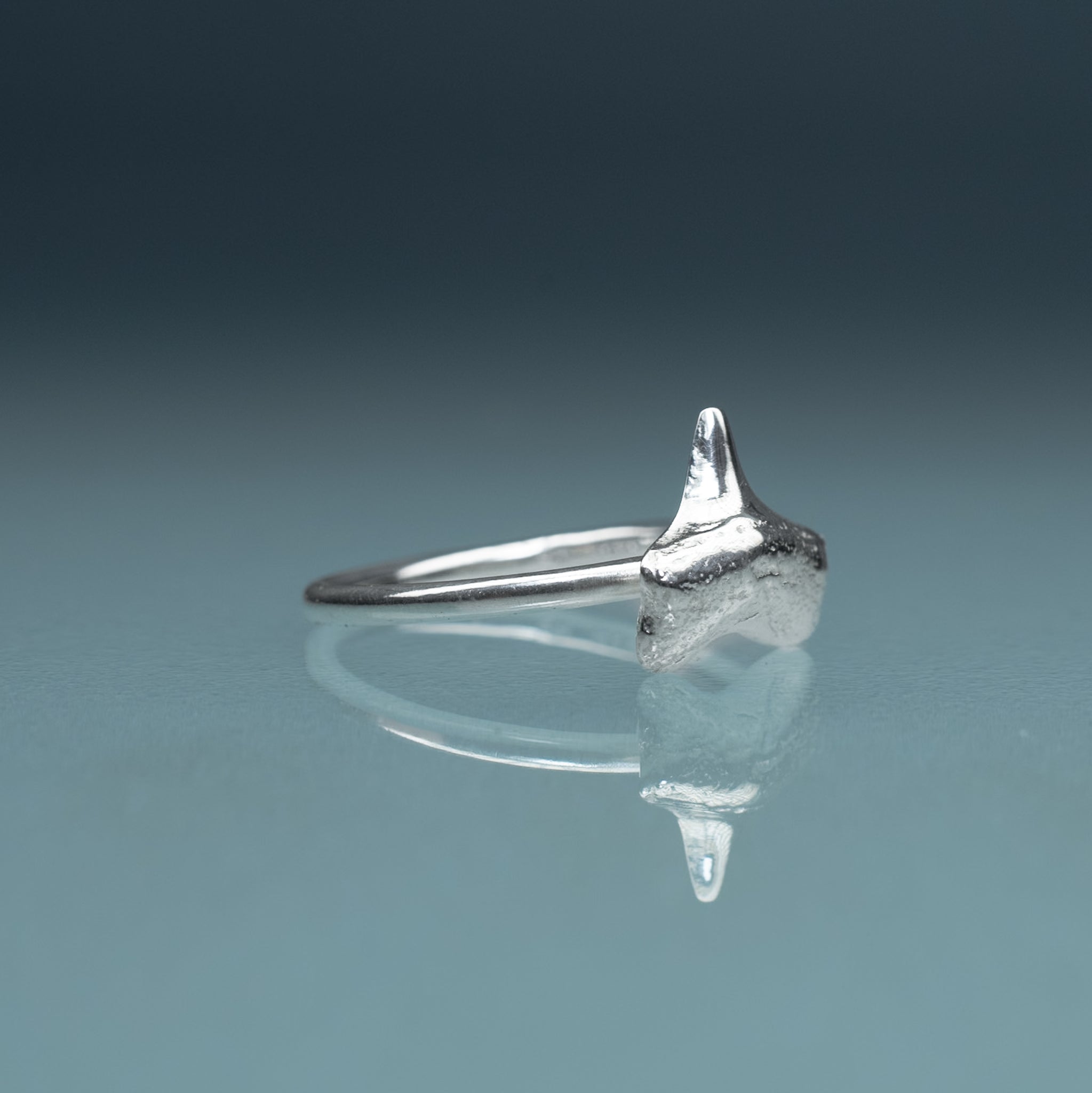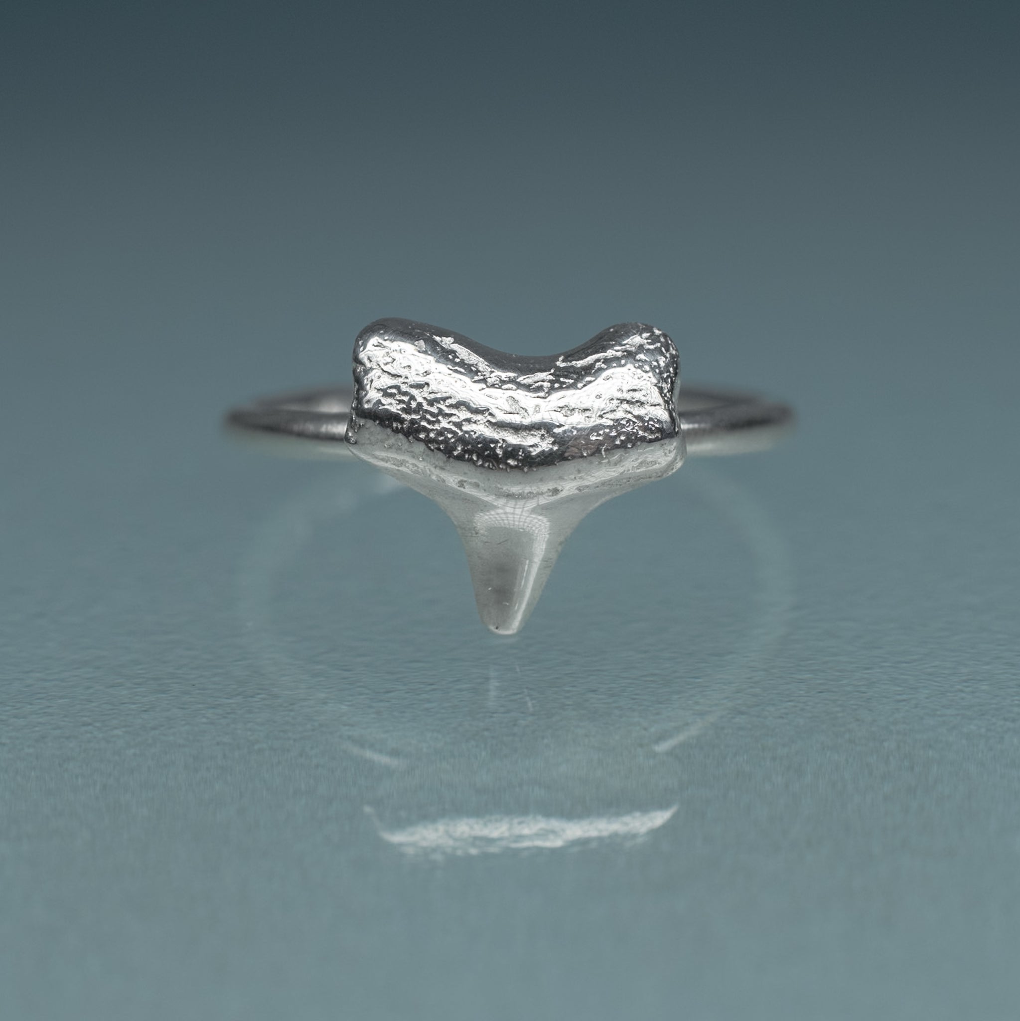 This little Ancient White Tooth Ring is made from the molding and casting of a real found fossilized Carcharodon hastalis shark tooth in recycled silver. A friend found the original tooth in Calvert Cliffs, MD.