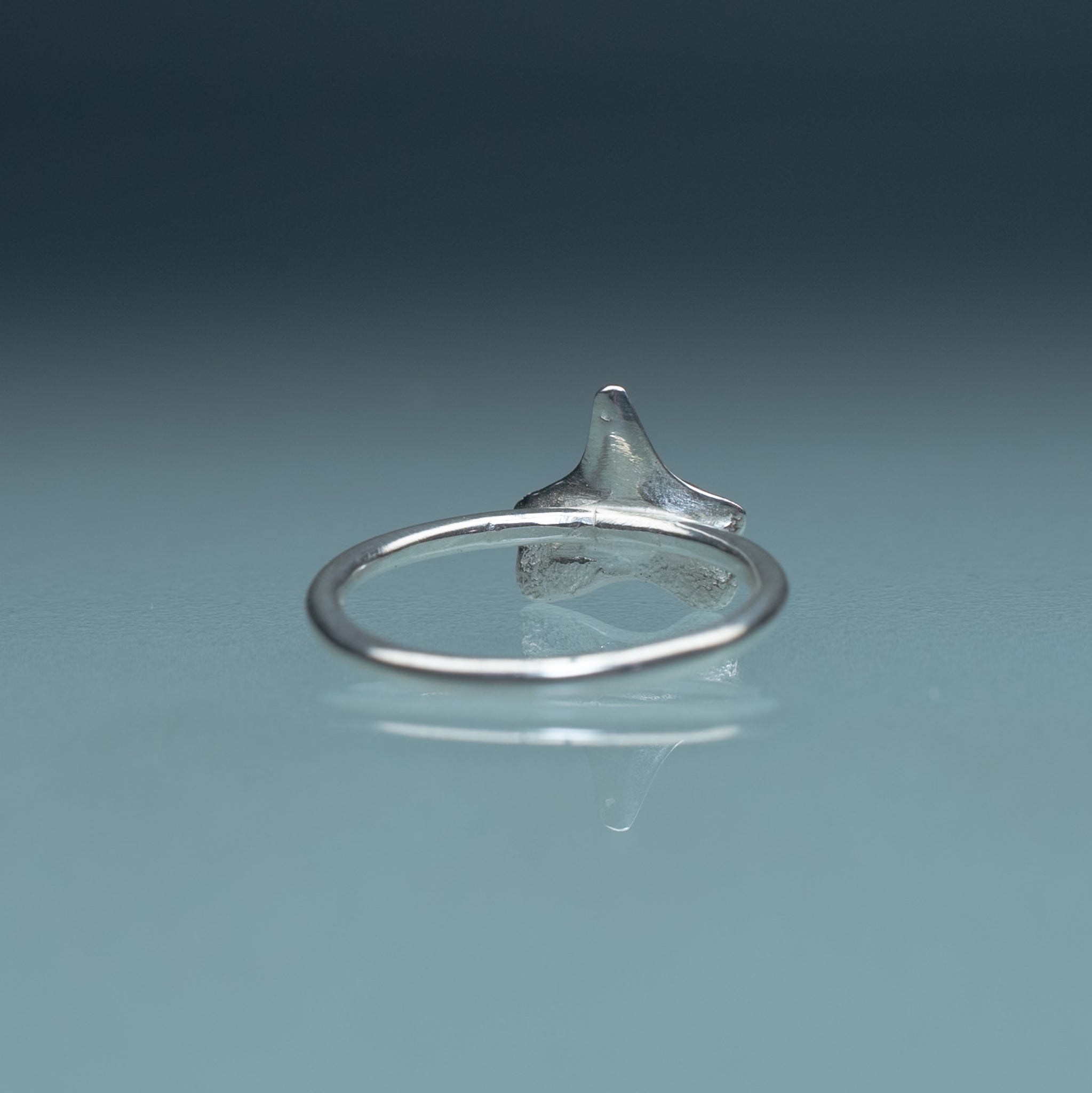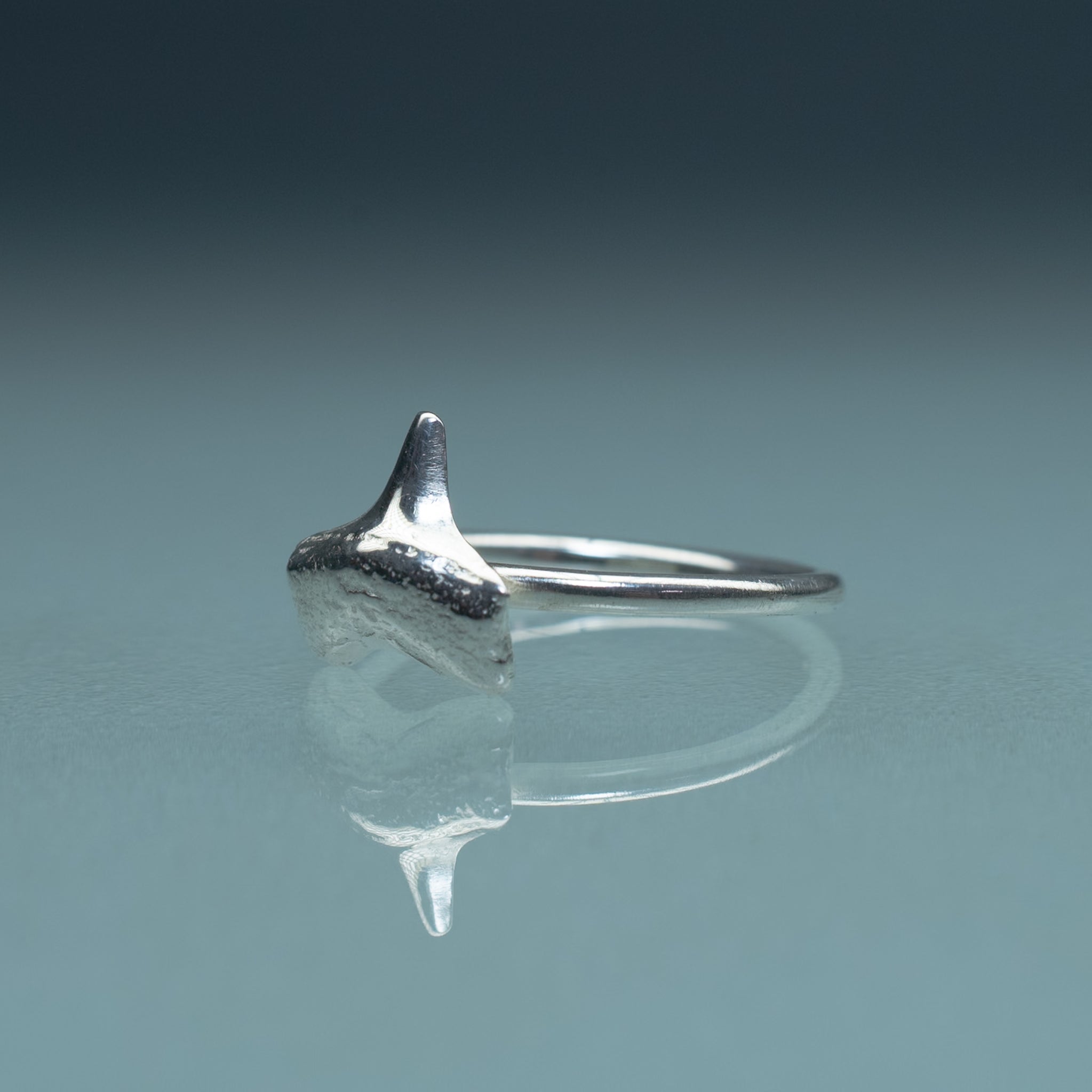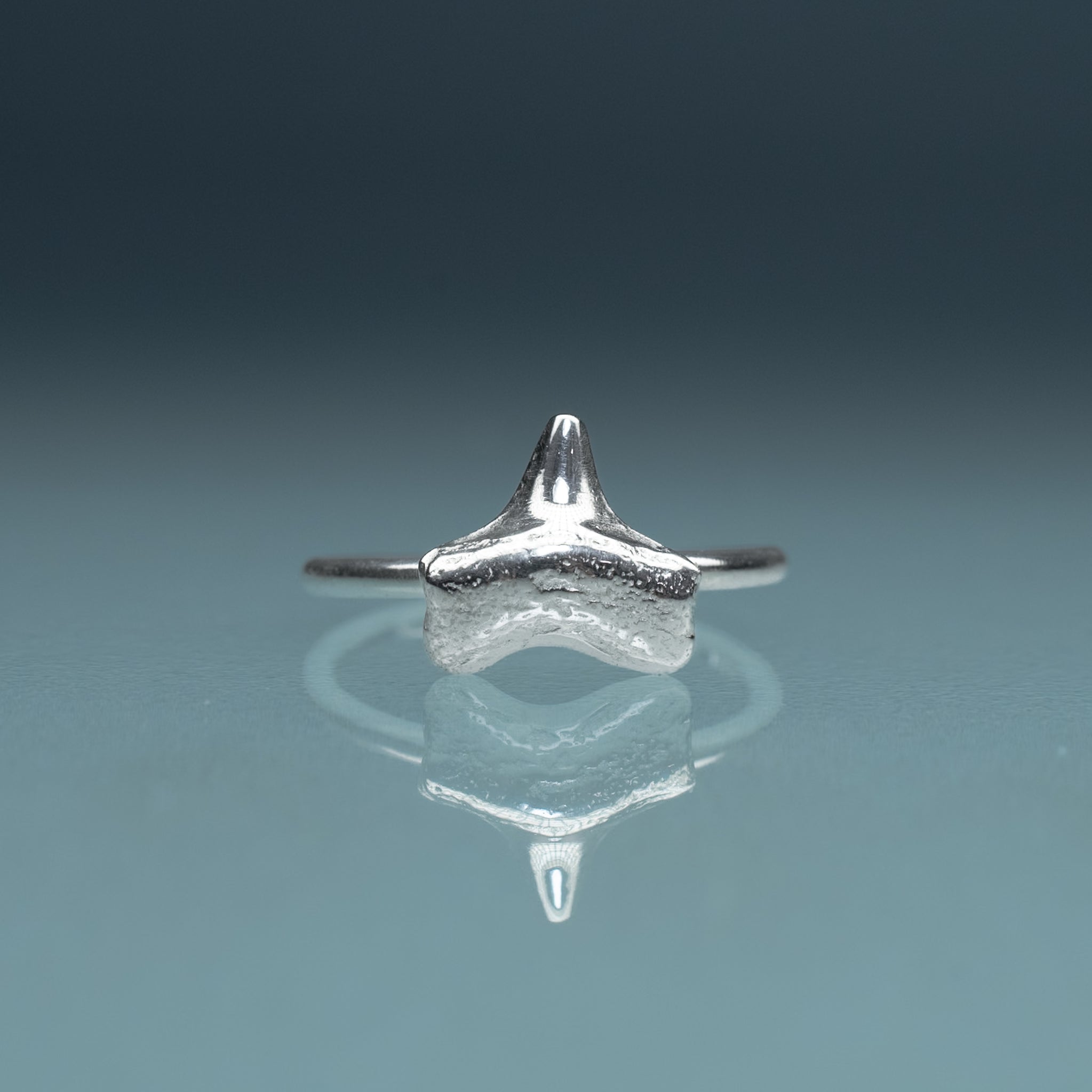 This little Ancient White Tooth Ring is made from the molding and casting of a real found fossilized Carcharodon hastalis shark tooth in recycled silver. A friend found the original tooth in Calvert Cliffs, MD.