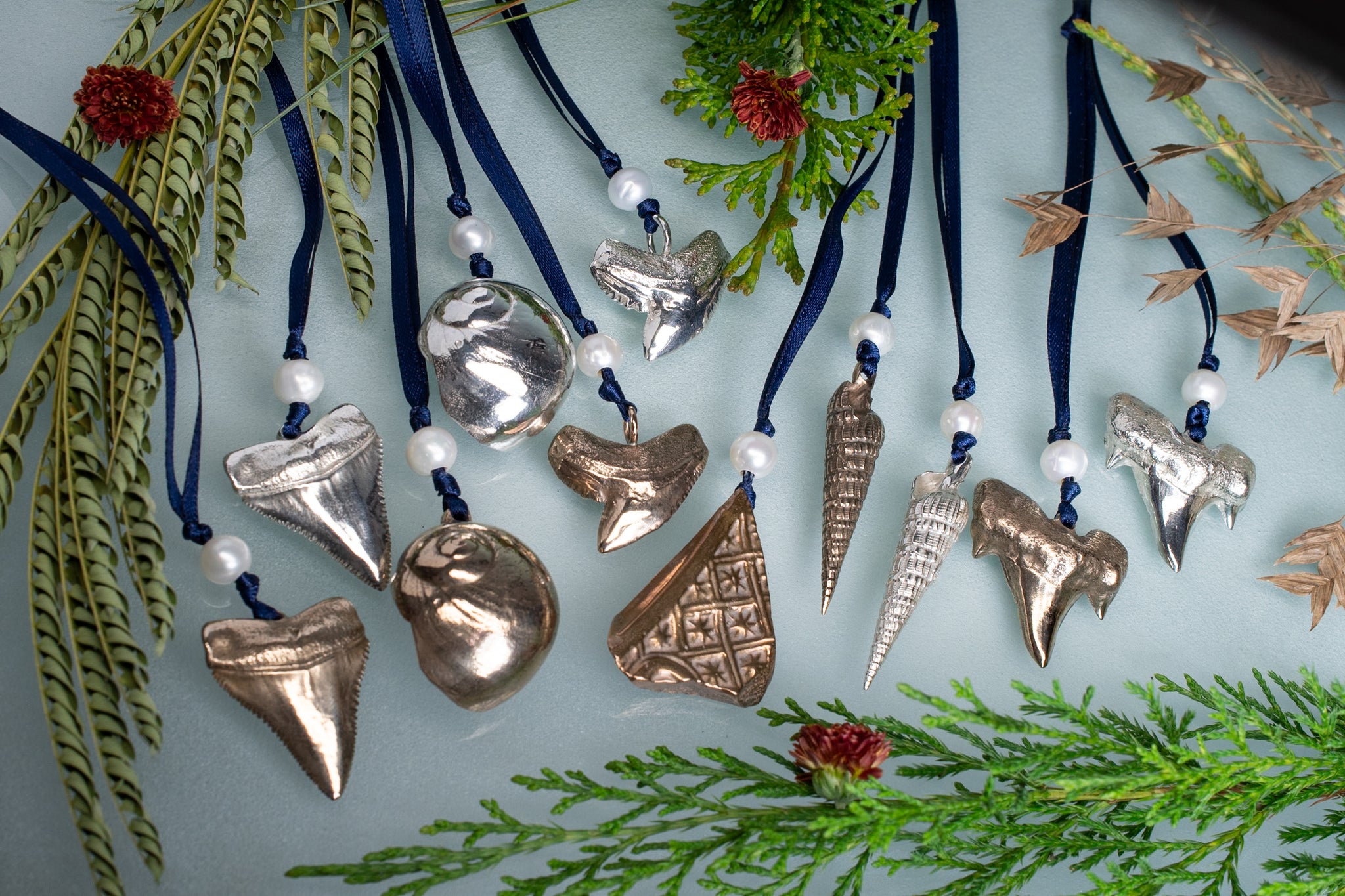 The Great White Shark Tooth Ornament is made from the molding and casting of a real Great White tooth in recycled metal.