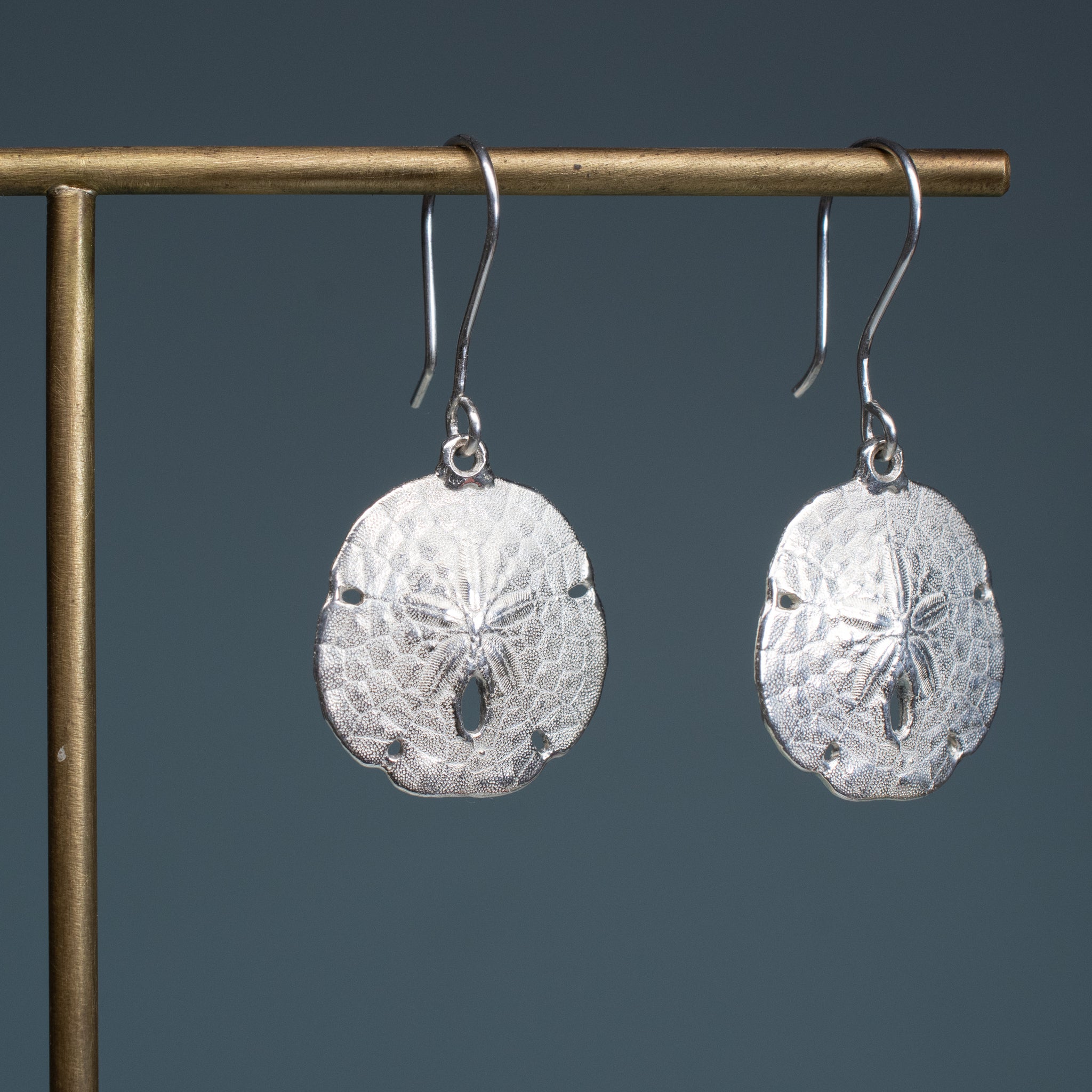 Small Cast Sand Dollar Shell Dangle Earrings - (mellita quinquiesperforata)