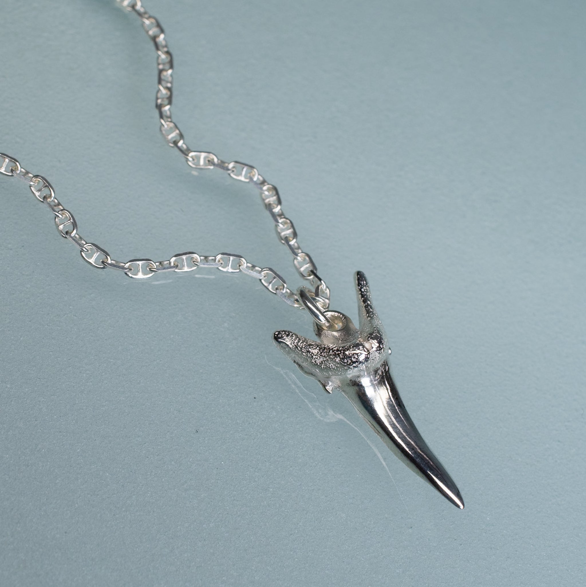 Once the casting is created, I solder on a jumpring and it is strung on an 18” or 20” sterling silver anchor chain of your choice.